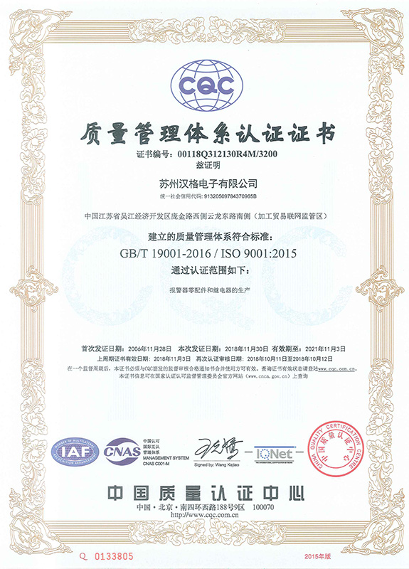 公司建立了一整套完整的質量保證體系,先后通過ISO9001和ISO140001,產品獲得美國cUL, 歐洲CE, 中國CCC等國內外安全認證。可靠的質量,美國專業完美的科研技術和中國強大的制造能力,形成高品質、高效率和最佳性價比,使漢格門磁開關成為高品質用戶的首選產品。